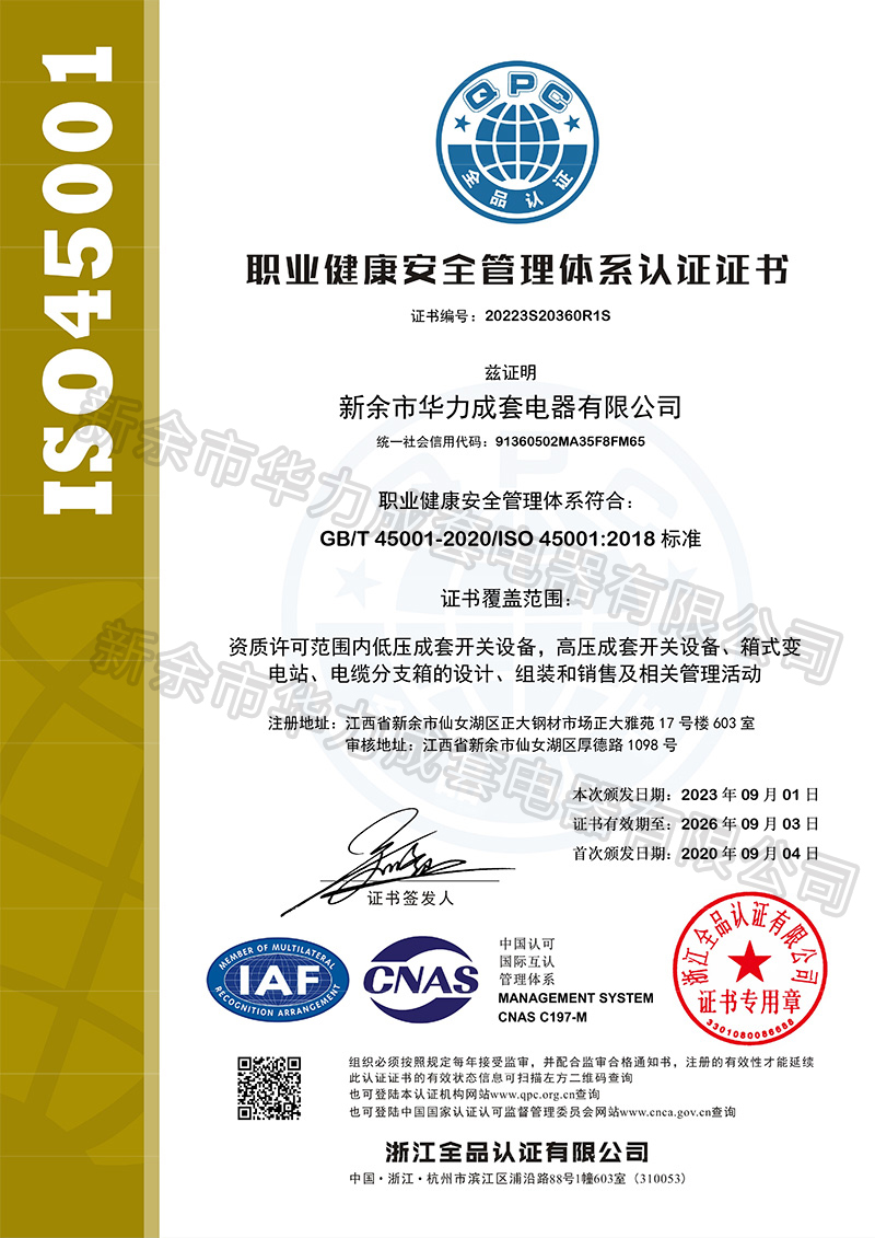 職業(yè)健康安全管理體系證書(shū)中/英文查看詳情>>